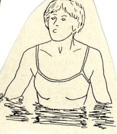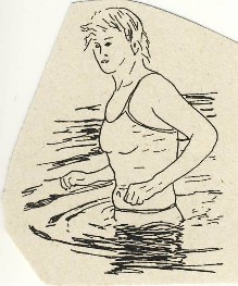 "...Bei einer Wassertiefe über dem Bauchnabel ragt bei längeren Beinen oder einem längeren Rumpf ein größerer Teil des Oberkörpers aus dem Wasser. Da dieser keinen Auftrieb erhält, kann das Individuum mehr Kraft mit den Füßen übertragen, was das Gehen erleichtert und die erreichbare Geschwindigkeit erhöht. Bei kurzen Beinen wird man im Gegensatz hierzu durch den Auftrieb so leicht, dass das Gehen sehr schwer fällt..."